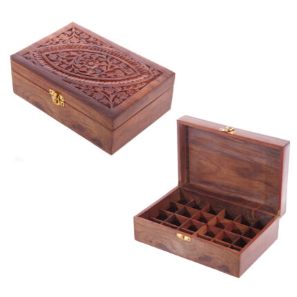Decorative Sheesham Wood Carved Compartment Box Medium