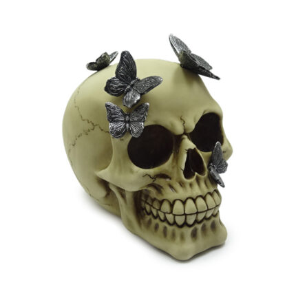 Decorative Ornament – Skull with Metallic Butterflies