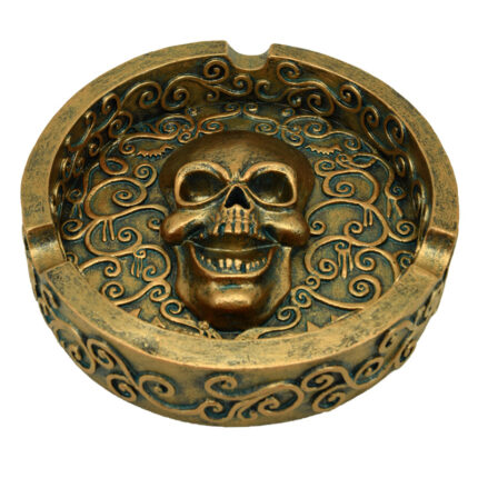 Decorative Ashtray – Metallic Brushed Gold Effect Skull
