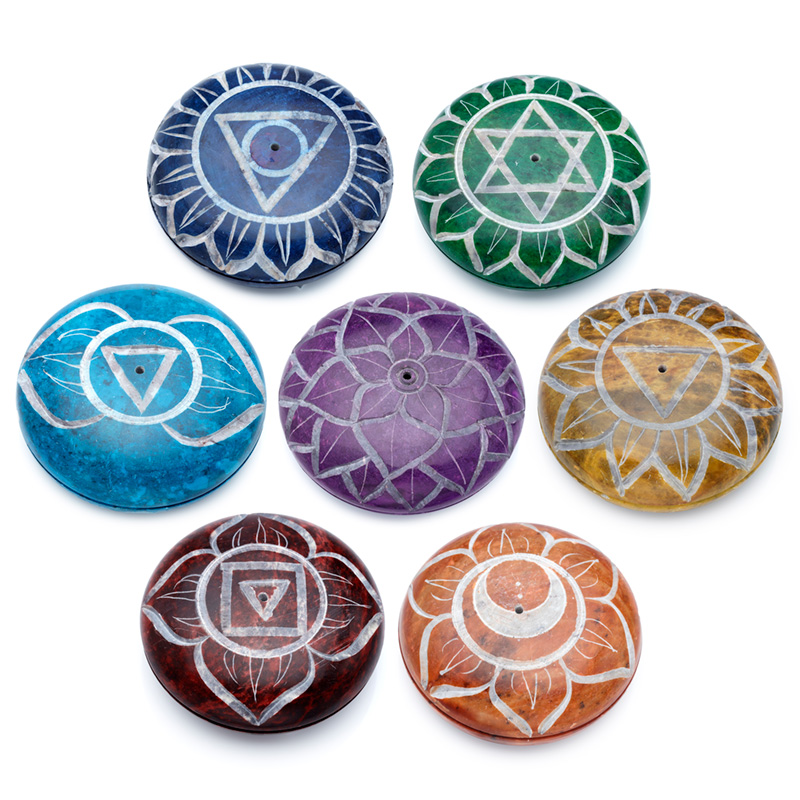 Carved Soapstone Chakra Pebble Ashcatcher Incense Stick Burner